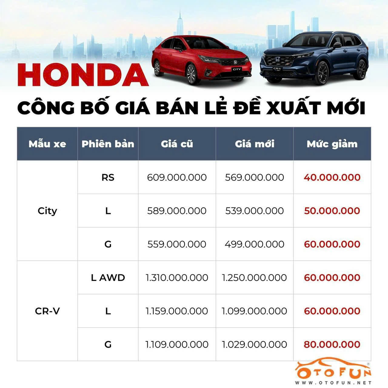 Lần đầu tiên, Honda Việt Nam chính thức giảm giá niêm yết các dòng xe lắp ráp trong nước lên đến 80 triệu để nhằm giúp khách hàng dễ dàng tiếp cận đến các dòng xe như Honda City và Honda CRV. Để biết giá lăn bánh chính xác cùng nhiều khuyến mãi hấp dẫn, khách hàng hãy liên hệ ngay số điện thoại 0901.388.256 - Ngân Uyên để được hỗ trợ tận nơi.