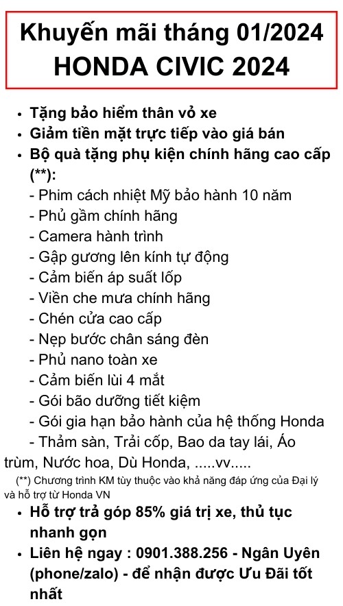Để dễ dàng sở hữu xe HONDA CIVIC RS XÁM, Showroom Honda Ô tô Sài Gòn Quận 2 mang đến cho khách hàng chương trình ưu đãi tốt nhất với chi phí thanh toán thấp nhất. Cách nhanh nhất để nhận ưu đãi, khách hàng liên hệ ngay số điện thoại 0901.388.256 - Ngân Uyên để được hỗ trợ.