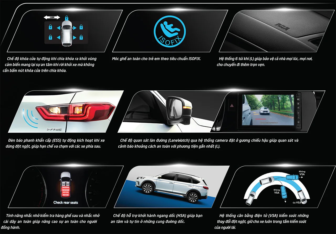 Bên cạnh Honda Sensing, Honda BR-V 2025 còn sở hữu một loạt các tính năng và công nghệ để đảm bảo an toàn cho hành khách trong mọi tình huống.