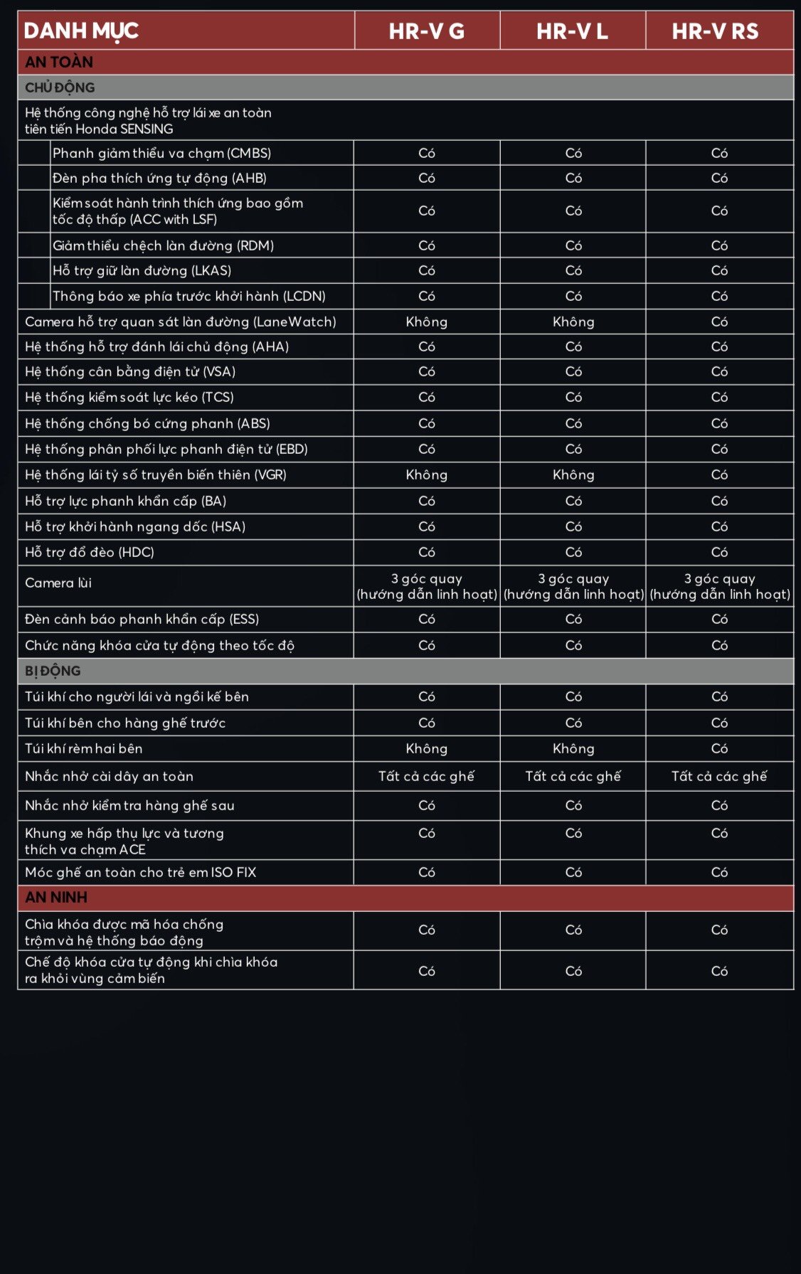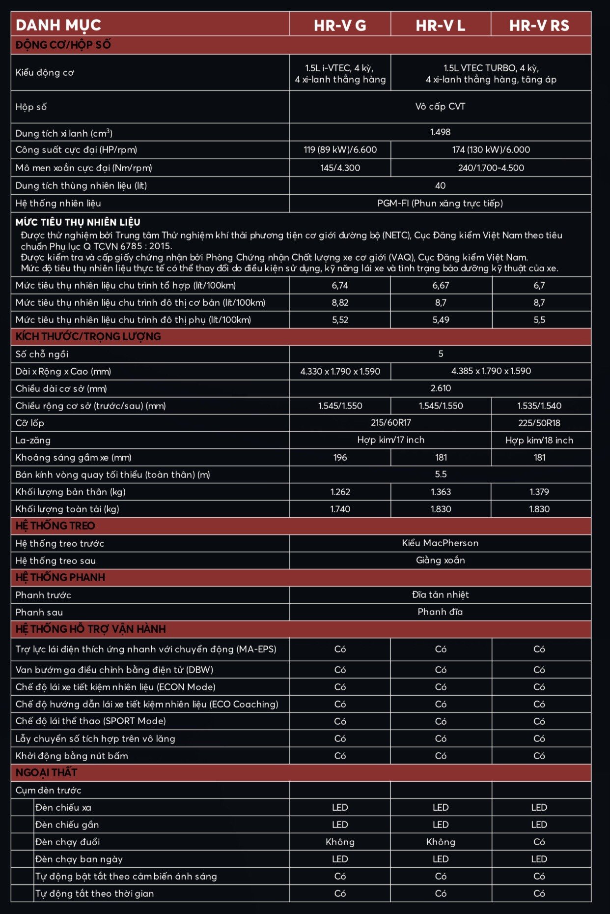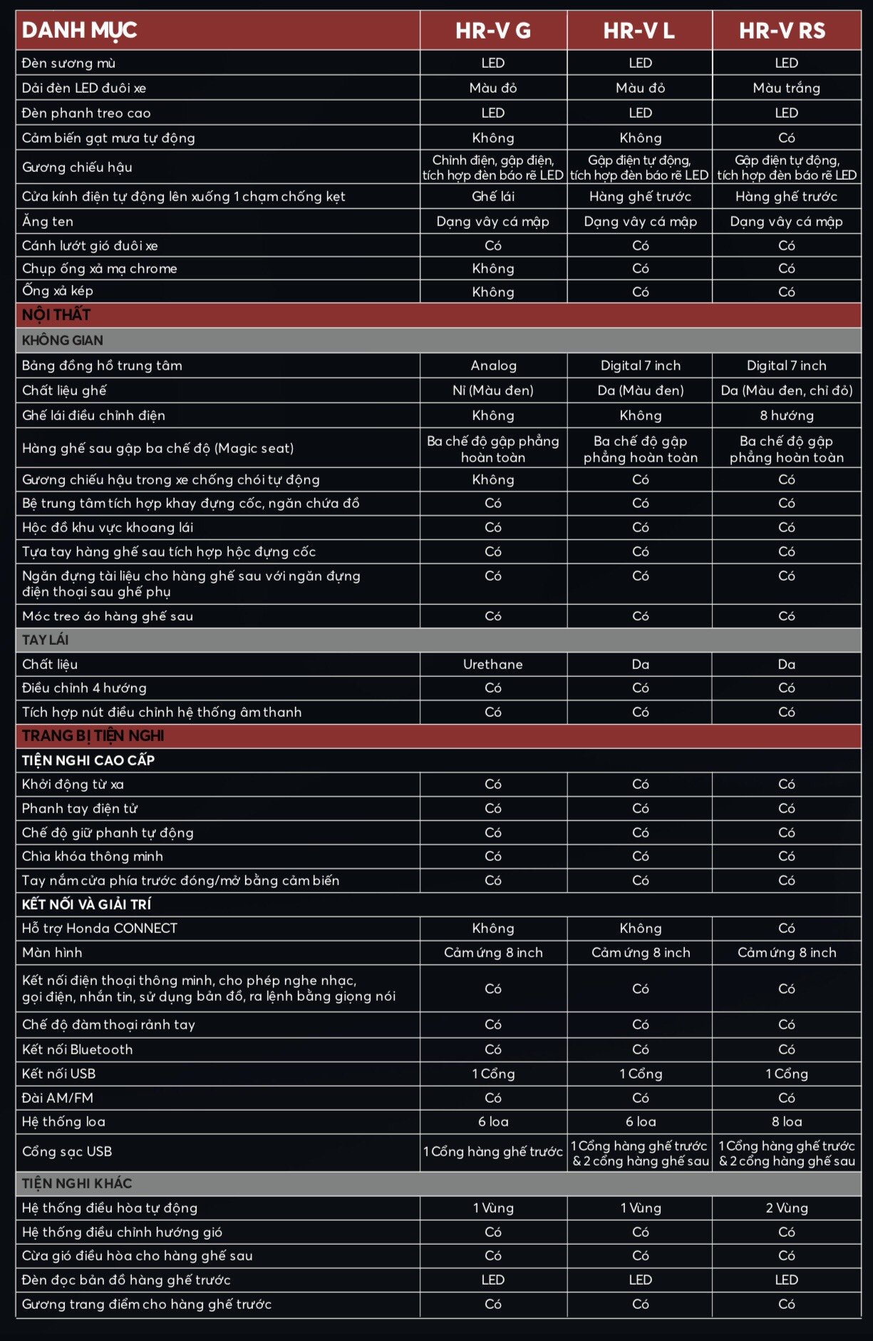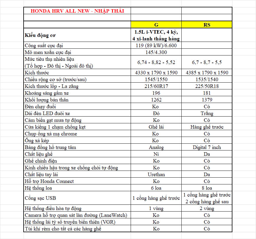 So sánh 2 phiên bản Honda HRV G và Honda HRV RS và thông số kỹ thuật cụ thể