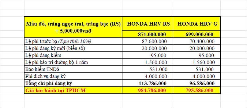- Honda HRV G: 971.000.000VNĐ
