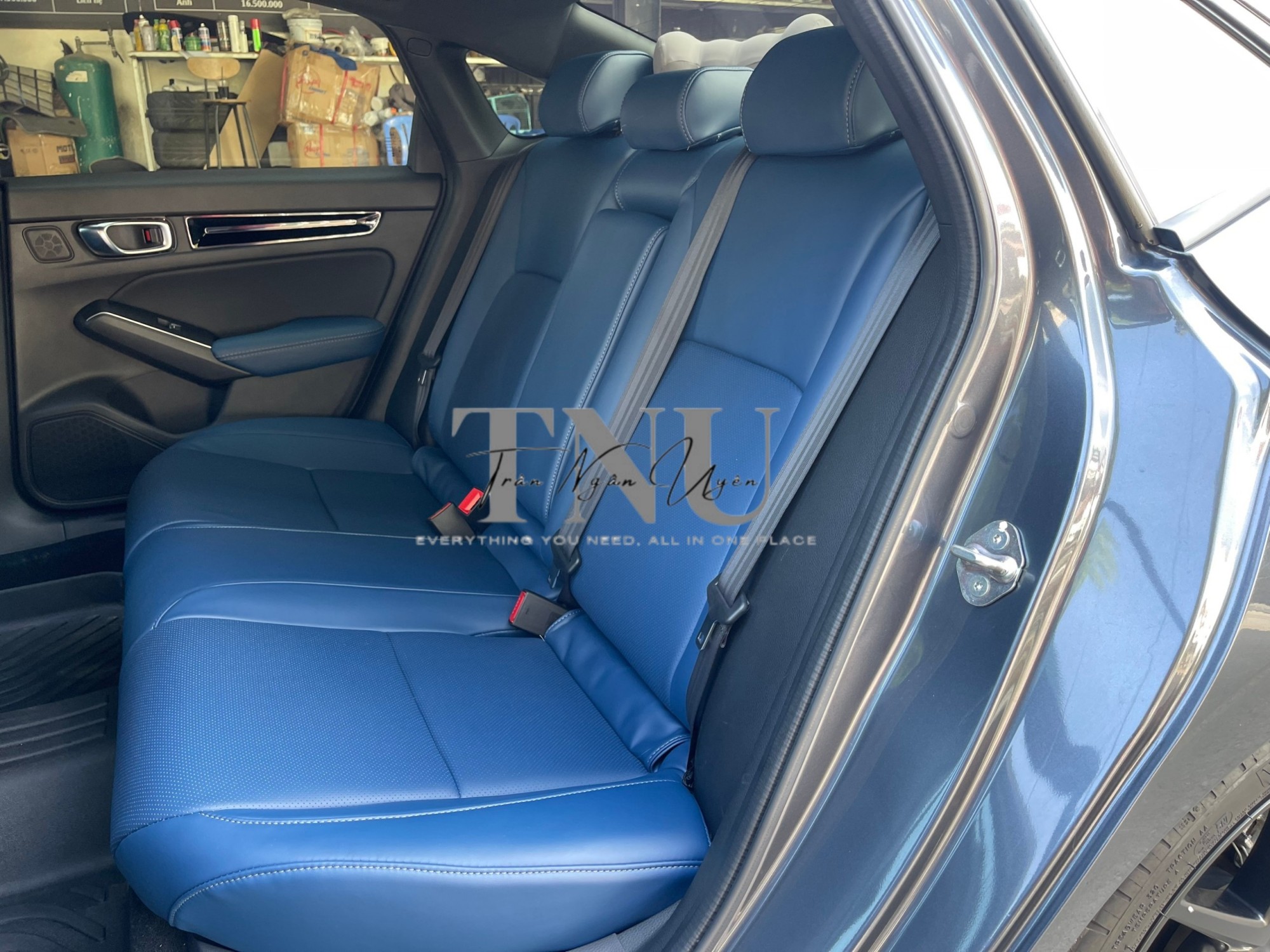 Dù đã được Honda trang bị bộ ghế da kết hợp với da lộn cao cấp mang phong cách thể thao mạnh mẽ, hợp xu hướng nhưng anh Hưng - chủ sở hữu xe Civic RS - vẫn mong muốn đầu tư một bộ ghế cao cấp hơn nữa cho xế yêu của mình. Vì vậy sau khi tìm hiểu kỹ về các ưu khuyết điểm, anh Hưng đã quyết định thay thế toàn bộ ghế theo xe thành bộ ghế da Nappa cao cấp màu xanh với chi phí cực kỳ hợp lý.