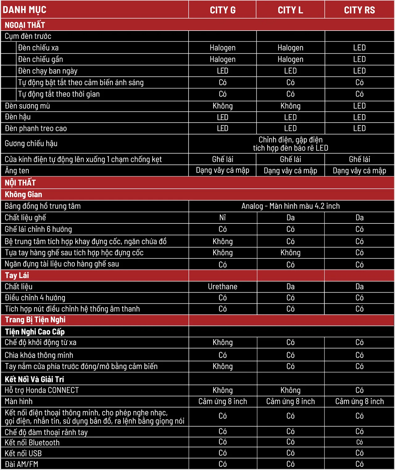 MÀU SẮC HONDA CITY