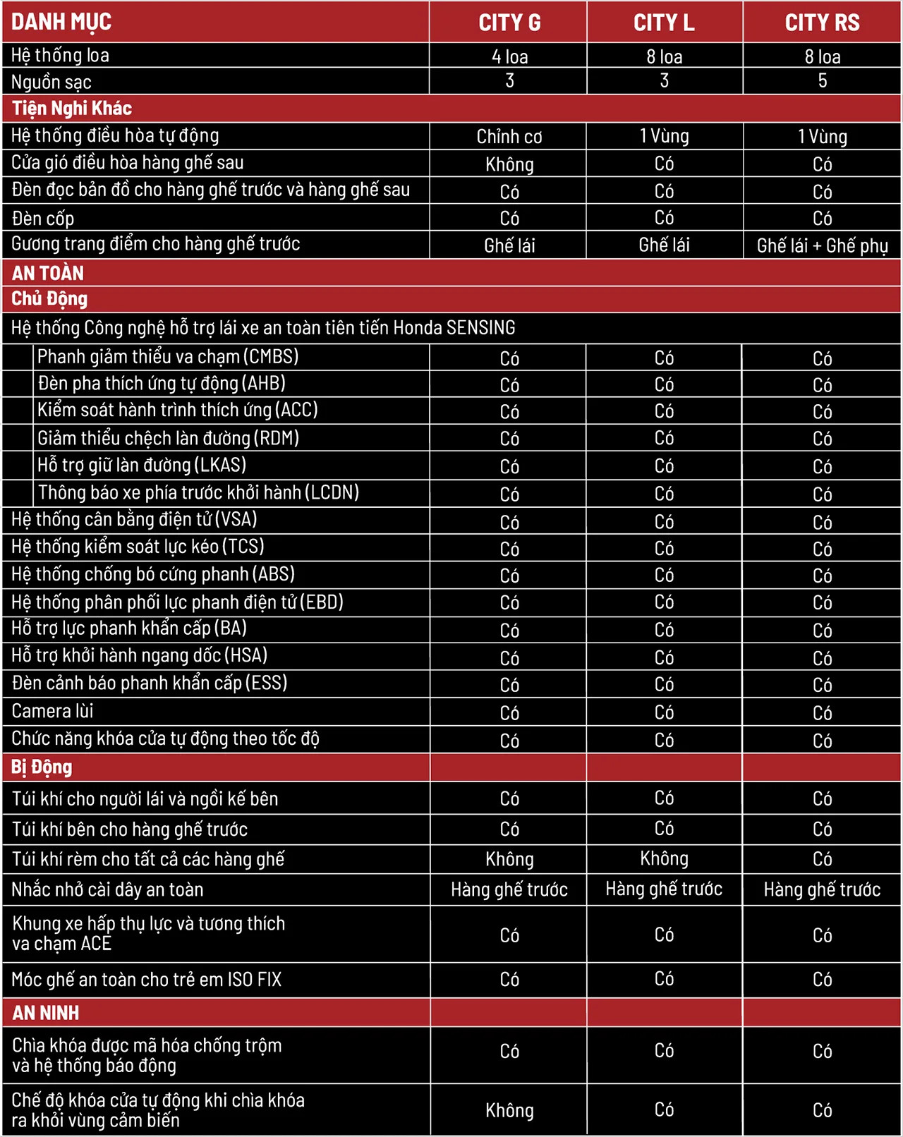 HỆ THỐNG AN TOÀN HONDA CITY